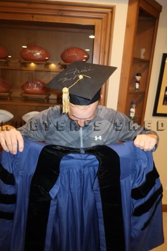 These items were worn by Willie at one of his speeches for a graduation ceremony. He gave them to me in 2005 but I’m not sure which university they are from. He signed both the cap and the gown for me and there probably aren’t many of these in existence.